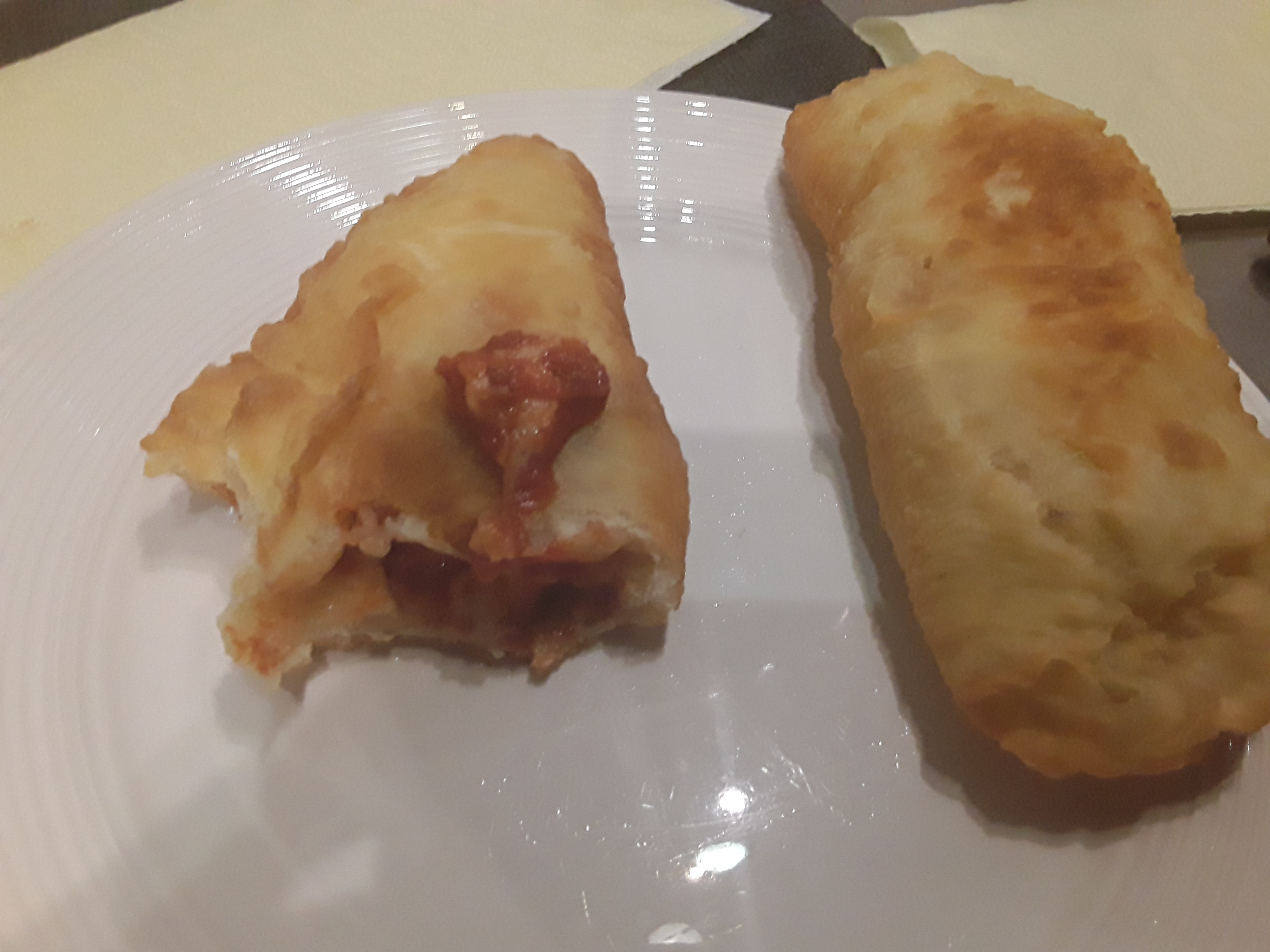Mio marito per il suo compleanno aveva il desiderio di mangiare i panzerotti fritti e io volevo accontentarlo. Solo che li avevo preparati solo in forno come nei miei "PANZEROTTI AL FORNO CON POMODORO E ACCIUGHE" e mai fritti, anche perché confesso di non aver mai fatto il fritto, seppur buonissimo lascia odore in casa e ho sempre evitato. Questa volta peró non potevo esimermi, cosi mi sono cimentata. Ho acquistato l'impasto pronto, una salsa di pomodoro per pizza (molto più densa) e la mozzarella x pizza (molto più asciutta) per scongiurare di far bagnare l'impasto ed evitarne l'apertura in cottura. Devo dire che su 8 preparati, solo 2 si sono leggermente aperti, direi un successo! Non li ho riempiti tanto per evitarne la fuoriuscita e comunque l'impasto fritto é buono lo stesso. Su 1kg circa di impasto ne ho fatti 8, ma secondo me si riesce a farne anche 10 da 100g per evitare troppo impasto. Soddisfatti, da riprovare con un ripieno di prosciutto cotto o verdure!